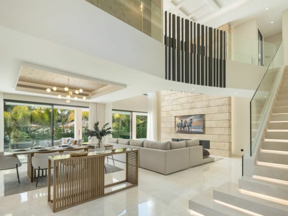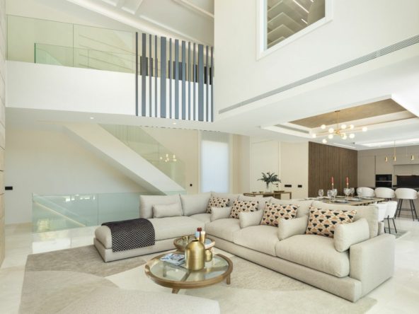 Set in the exclusive enclave of La Cerquilla, this exceptional brand-new villa for sale is a masterclass in contemporary luxury, offering five spacious bedrooms and seven beautifully appointed bathrooms across four meticulously designed levels. A striking double-height entrance creates an immediate sense of grandeur, flooding the home with natural light and setting the tone for the elegant interiors beyond. The main living area features a stylish fireplace and flows seamlessly into an open-plan kitchen, designed for both everyday living and sophisticated entertaining. The property is further enhanced by a state-of-the-art home automation (domótica) system and an advanced automatic air renewal system, ensuring optimal comfort, efficiency, and air quality throughout.