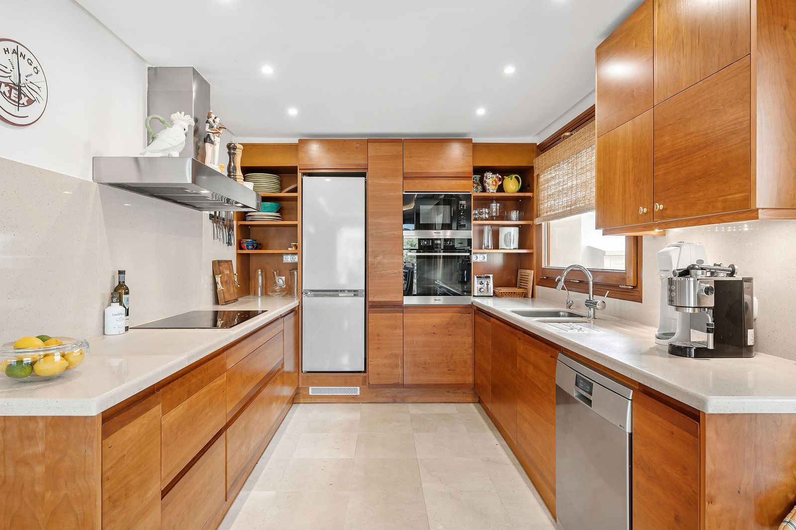 On the main level, there is an open-plan living room that connects to the dining room and kitchen. This space, designed for both day-to-day living and special occasions, has direct access to the outside and panoramic views. The kitchen is equipped with modern technology and carefully selected finishes. The master suite, with sea views, has a dressing room and private bathroom.