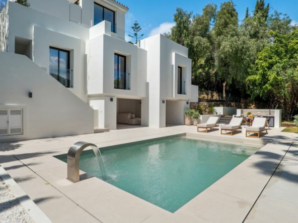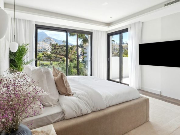 With five en-suite bedrooms and a separate guest studio with independent access—bringing the total to six bedrooms it ensures comfort and seclusion. The master suite, a peaceful retreat, provides stunning views of the surrounding countryside. Outdoors, a large pool and luxurious sunbathing area create an idyllic space to enjoy Marbella’s sunshine. The outdoor dining area also offers the perfect setting for alfresco evenings under the stars. This brand-new villa with furniture included presents a unique opportunity for its future owners.