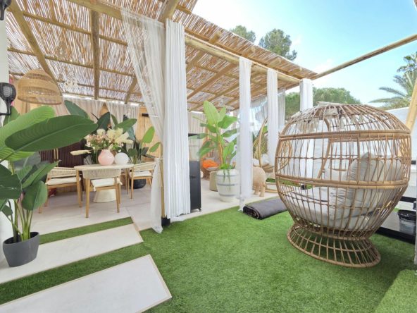 Through the kitchen you have a spacious garden / terrace area (currently a temporary pergola erected, which will be removed before departure). This east facing garden has many opportunities to reform and add personal taste and style.