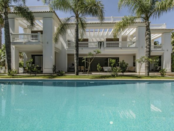 Beautiful Andalusian-style, 6-bedroom villa located in the prestigious and quiet area of Casasola, on second line beach. The villa is 613 m2 and offers a large mature garden, numerous terraces and a fantastic solarium on the upper floor from where magnificent views of the sea and mountains can be seen. A tropical oasis in the heart of the most luxurious neighborhood in Andalusia.