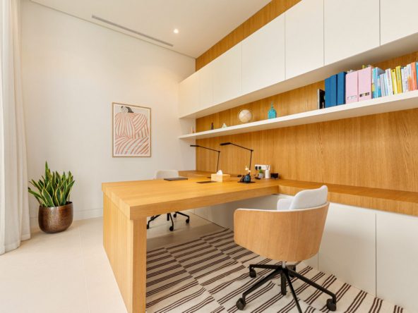 The main floor offers seamless indoor-outdoor living with an open-plan lounge and dining area that flows to expansive terraces and the pool. Floor-to-ceiling glass doors flood the home with light, while the designer kitchen, double-height ceilings, and thoughtful layout make it ideal for family life and entertaining. The villa includes six spacious bedrooms, with a standout primary suite featuring a walk-in wardrobe and luxurious en-suite bathroom. Additional highlights include a home office, a private entertainment level with a gym, media area, and leisure spaces. Outdoors, residents enjoy a private pool, manicured lawns, and both shaded and sunlit terraces. Secure entry, ample parking, and integrated climate and lighting systems complete this turnkey residence in one of Marbella’s most desirable neighborhoods.