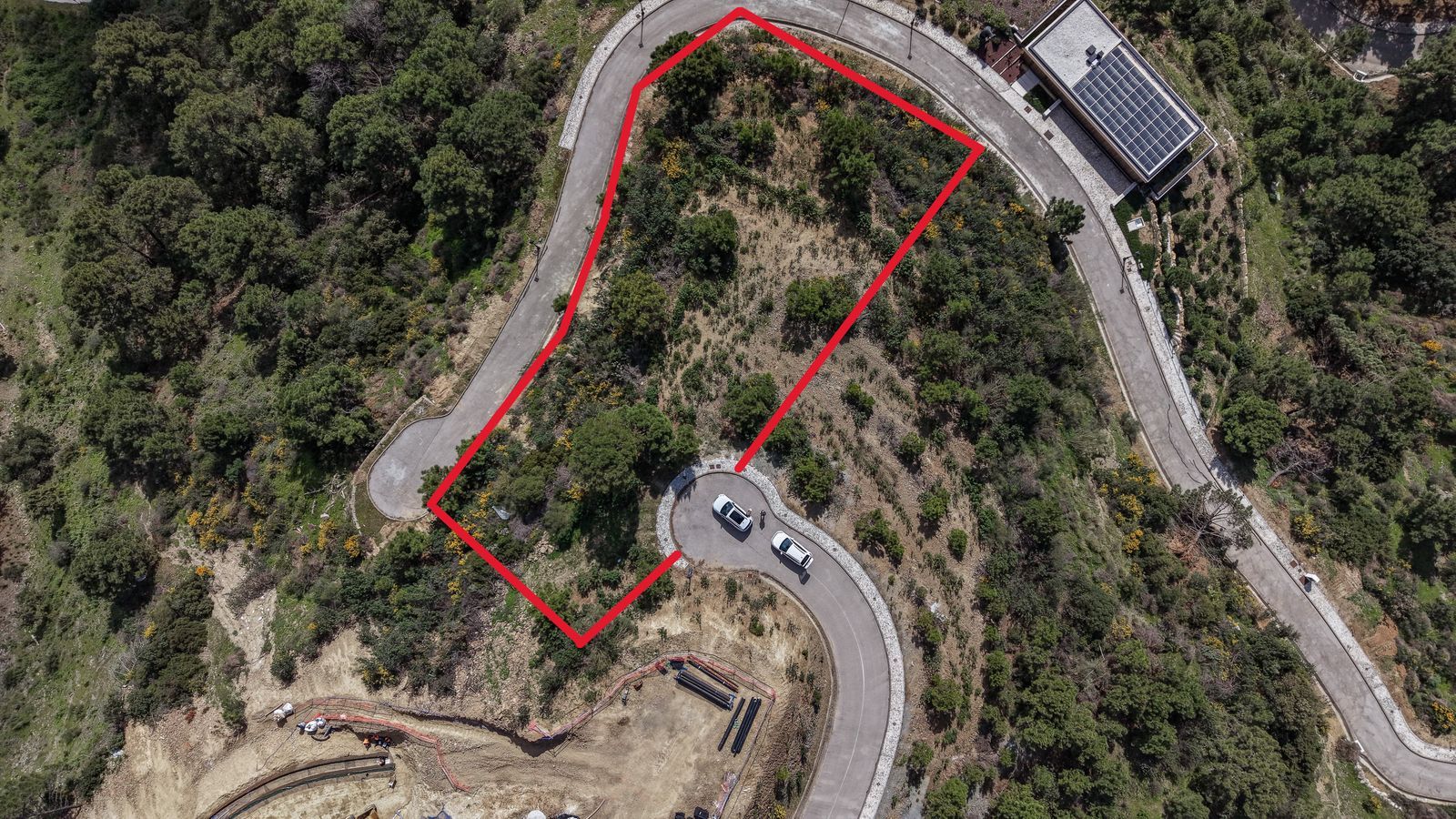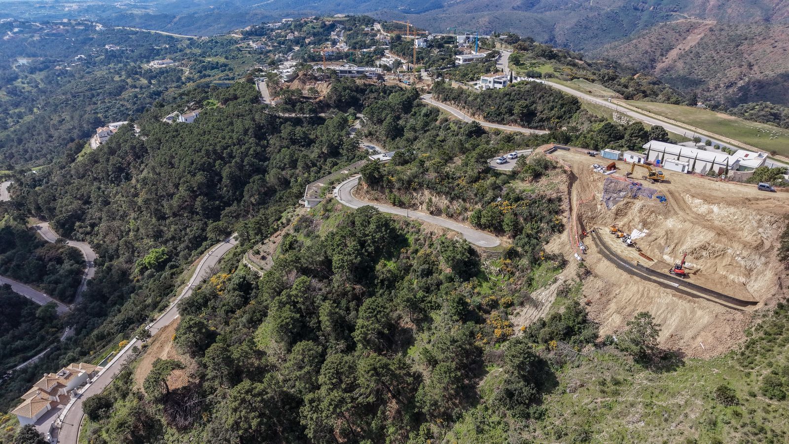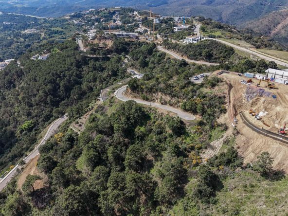 Spanning 2,392 m², the plot enjoys an elevated position that maximises its south and east sea and mountain views, with uninterrupted vistas stretching across the coastline and rolling green valleys. The setting is both tranquil and secure, within a gated community known for its low-density planning and natural beauty.