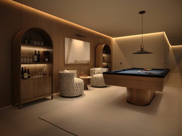 The basement level, is accessible via stairs and elevator, offers a large area along with an electrical room and a technical room. An additional technical room located beneath the sunbed area houses the pool installations.