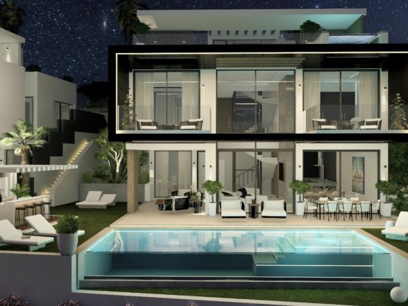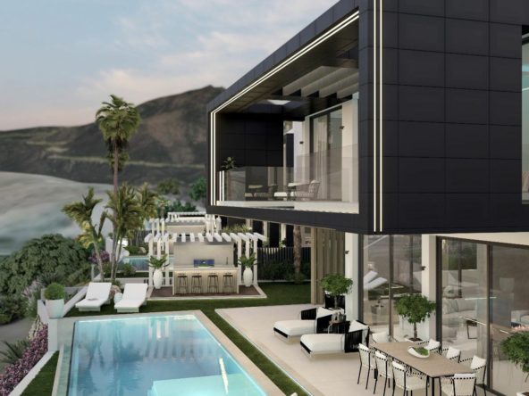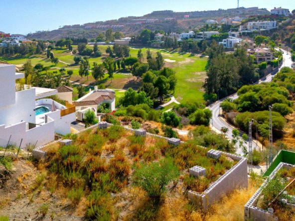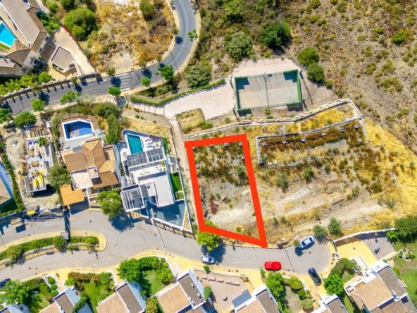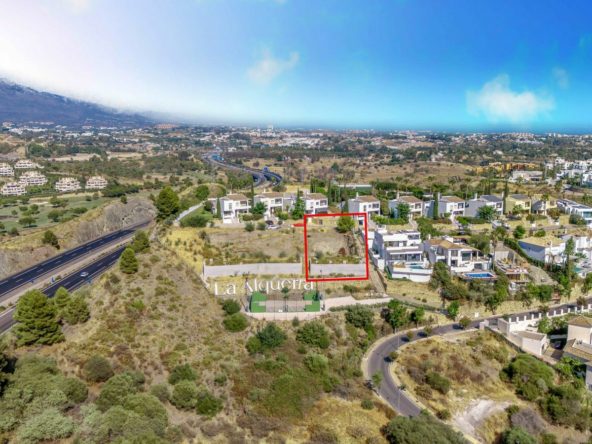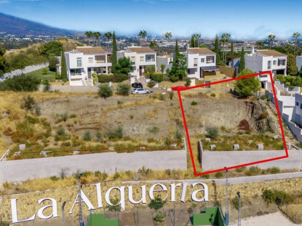 Residential plot for sale in a gated community in Benahavis by La Alqueria. The plot is 588m2, west facing with open views to the golf. There is a basic construction project in place for a villa of 435m2. A fantastic plot in a privileged location close to local amenities, a short drive to the beach, Marbella and Puerto Banus.