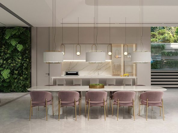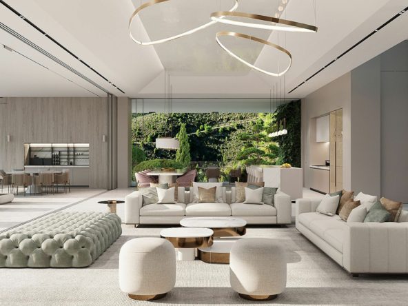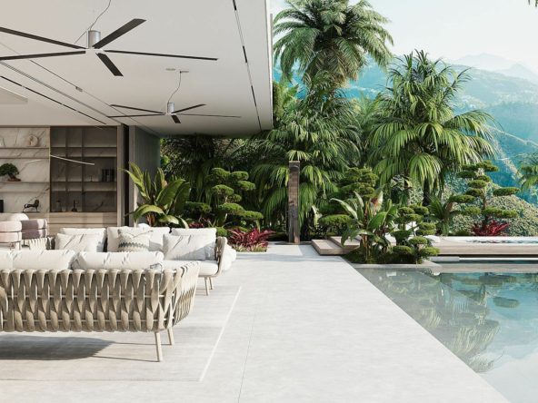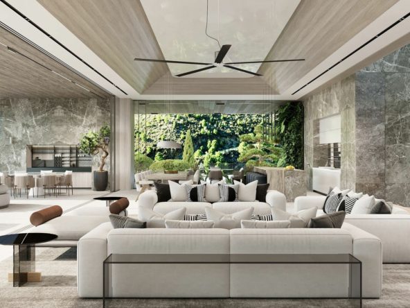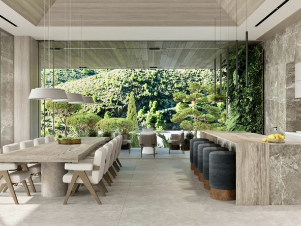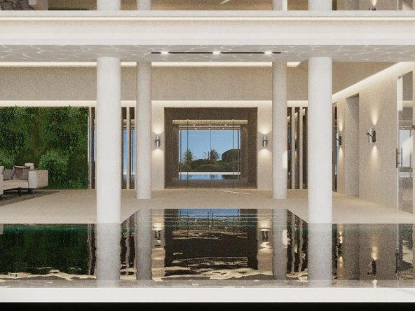 The finished villa will be distributed over three floors, with eight bedrooms (of which three are private suites with their own living and kitchen areas), 13 bathrooms (eight of which are part of ensuite, and two outdoor with outdoor showers), an outdoor pool and jacuzzi, an indoor pool and jacuzzi, a sauna, steam room, salon and medi-spa, and a gym! And there's still more! A bowling alley, cinema, beverage cellar, game room, library, chef's kitchen, show kitchen, living room, dining room, informal dining room, two English patios, a six-car garage, a three-car carport, a dedicated laundry room, a machine room, and a smart home equipped with audio throughout indoor/outdoor spaces! Plus, photovoltaic-powered water heating, underfloor heating, a rain catch system for irrigation, water recycling, and so much more!