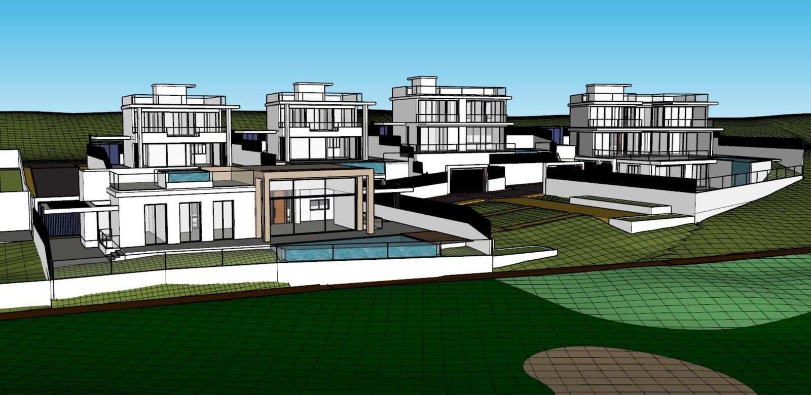 A key advantage is that these plots come with a valid building licence, allowing construction to start immediately. They also include an architectural project, corresponding to the villas shown in the images.