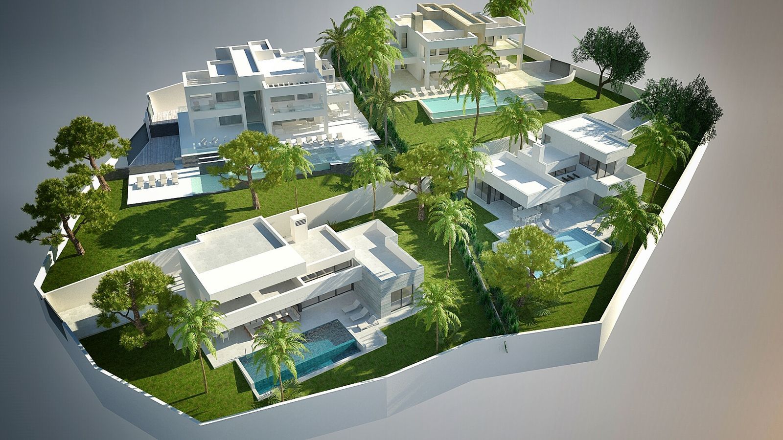 Located in one of the most prestigious residential areas of Marbella, Elviria, in an elevated position granting sea views to all 4 villas. Located 6km to the east of Marbella town, Elviria is close to the many amenities of the bustling town of Marbella. Large shopping centres such as La Cañada and Miramar in Fuengirola are just a short trip away and the proximity of Málaga Airport makes it ideal for people wishing to make frequent trips back home. For boat lovers, the area is also very close to the picturesque Puerto Cabopino marina or to the famous Puerto Banús. The best beaches of Marbella are only 2 km away where you will find also the reknown Nikki Beach Club, one of the highlights of the five-star Don Carlos Resort.